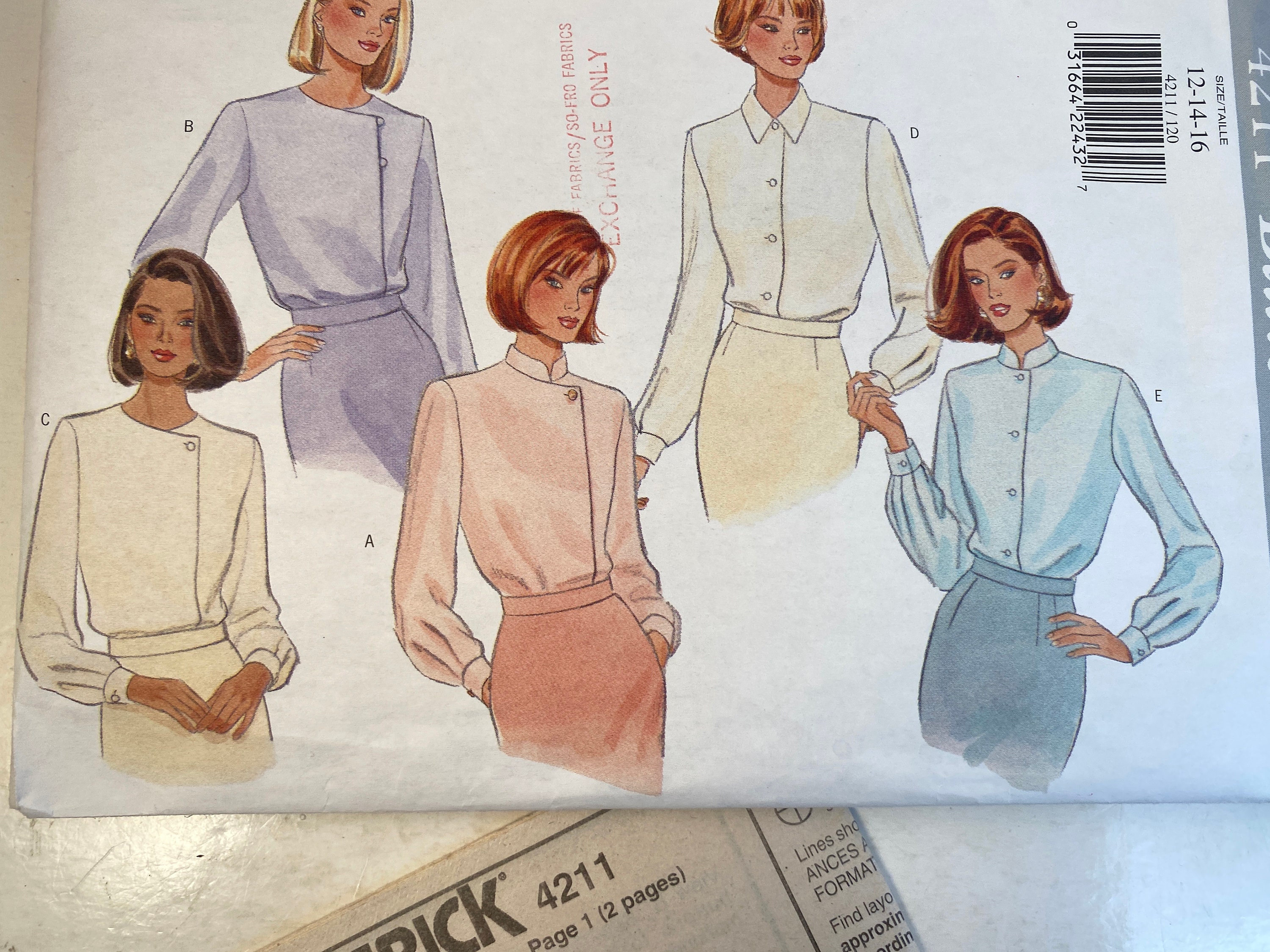 Butterick 4211 Misses Blouse Pattern Sewing Pattern Etsy