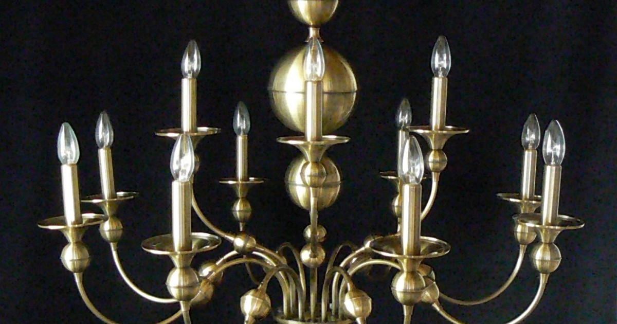12 Arms Stained Dutch Chandelier Made Of Manually Pressed Brass Parts Antik Bohemian Glass